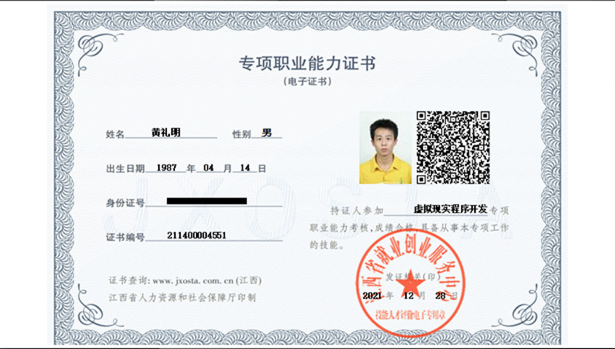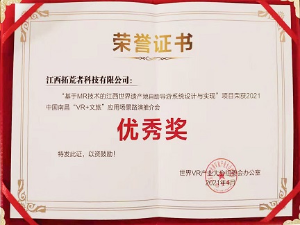 《基于MR技術的江西世界遺產地自助導游系統設計與實現》項目榮膺2021中國南昌“VR+文旅”應用場景路演推介會優秀獎。