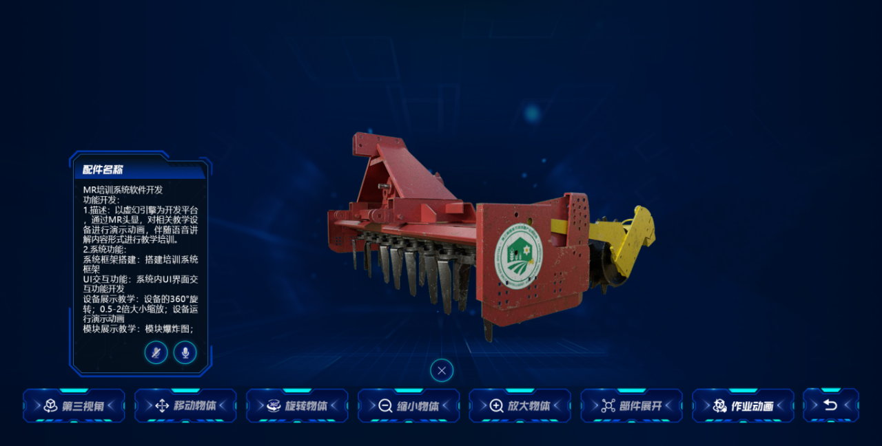 針對農耕機械領域的培訓工具,旨在幫助農民和農耕機操作員學習和理解農耕機的各個組件的功能和應用方法。
